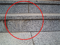 階段の目地から出ているエフロ |